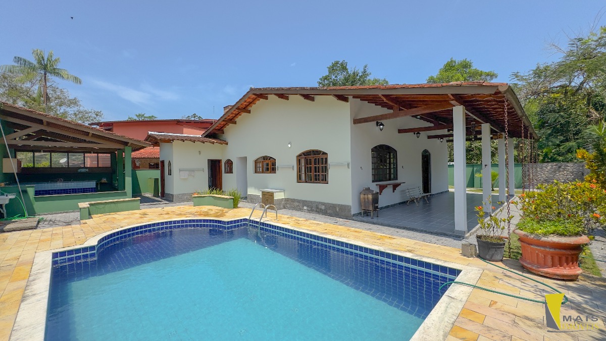 São 3 dormitórios, sendo 1 suítes, cozinha, sala de Tv, sala de jantar , área de lazer com piscina, wc externo, lavan