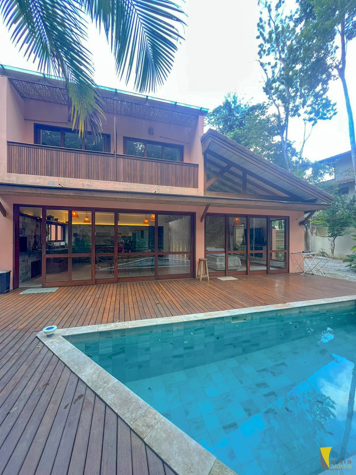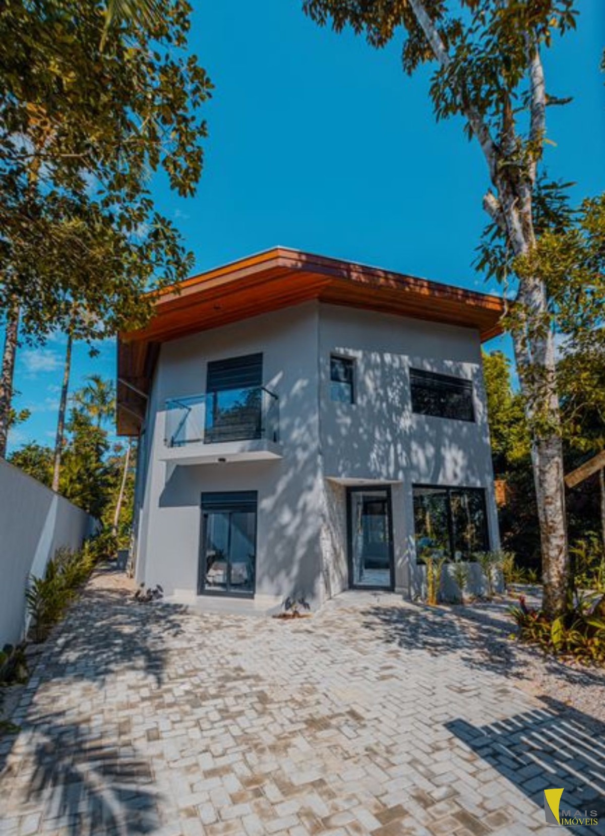 Localizada em uma rua sem saída e reservada a casa conta com 4 suítes, sendo uma suíte master na parte superior bem espaçosa, arejada e com uma hidro de frente para a mata atlântica. No pavimento central encontramos a cozinha, sala de tv e varan